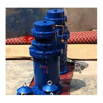 QSP全壓高速排氣閥由下閥體,中閥體,浮筒,浮筒桿,閥芯,蓋板,活塞桿,膜片及閥蓋等組成的全壓高速排氣閥,其特征是通過銷軸與浮筒鉸接的浮筒桿可繞主軸轉動,并由此實現通過浮筒升降控制閥芯的升降啟閉,即當浮筒下降(閥體里充滿氣體)時,閥芯上升,打開小閥口,并關閉小排氣帽上的排氣口,使氣體通過導管進入液壓罐內,當浮筒在浮力作用下上升時候,閥芯下降,關閉小閥口,同時打開排氣帽上的排氣口,使液壓罐通過導管,直通大氣泄壓,且當浮筒下降,液壓缸內充滿氣體時,閥門上的大排氣口自動關閉。當水泵停止,管內水流空時或遇到管內產生負壓時,吸入空氣,確保管線安全。