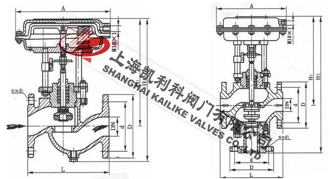 (1)氣動薄膜切斷閥采用多彈簧執(zhí)行機構(gòu)與調(diào)節(jié)機構(gòu)用三根立相連,整個高度可減小約30%,重量可減輕約30%。