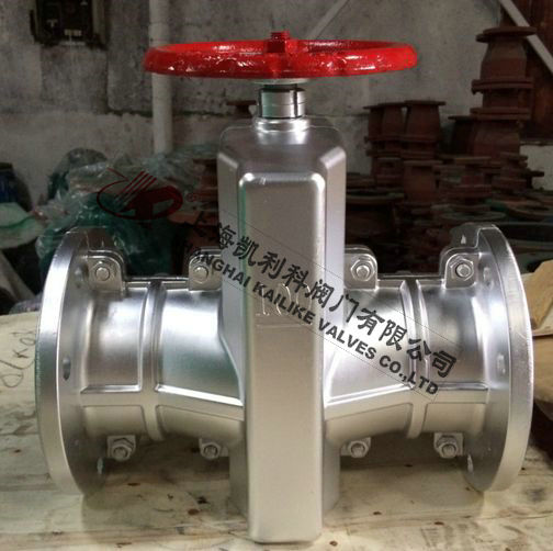 GJ41X不銹鋼管夾閥由上下鑄鐵、鋁合金、不銹鋼閥體,橡膠管套、大小閥桿閘板、上下導柱等零件組成。當順轉手輪時,使大小閥桿同時帶動上下茬板、壓縮管套、進行關閉,反之即行開啟。這樣,閘板在導柱之間上下往復完成閥門開閉工作,另因橡膠管套或承力小,所以在開閉時,操作人員旋轉輪時只要感到適量抵觸,均達到開閉極點。切勿盡力多人補助,禁用其他工具開閉。
