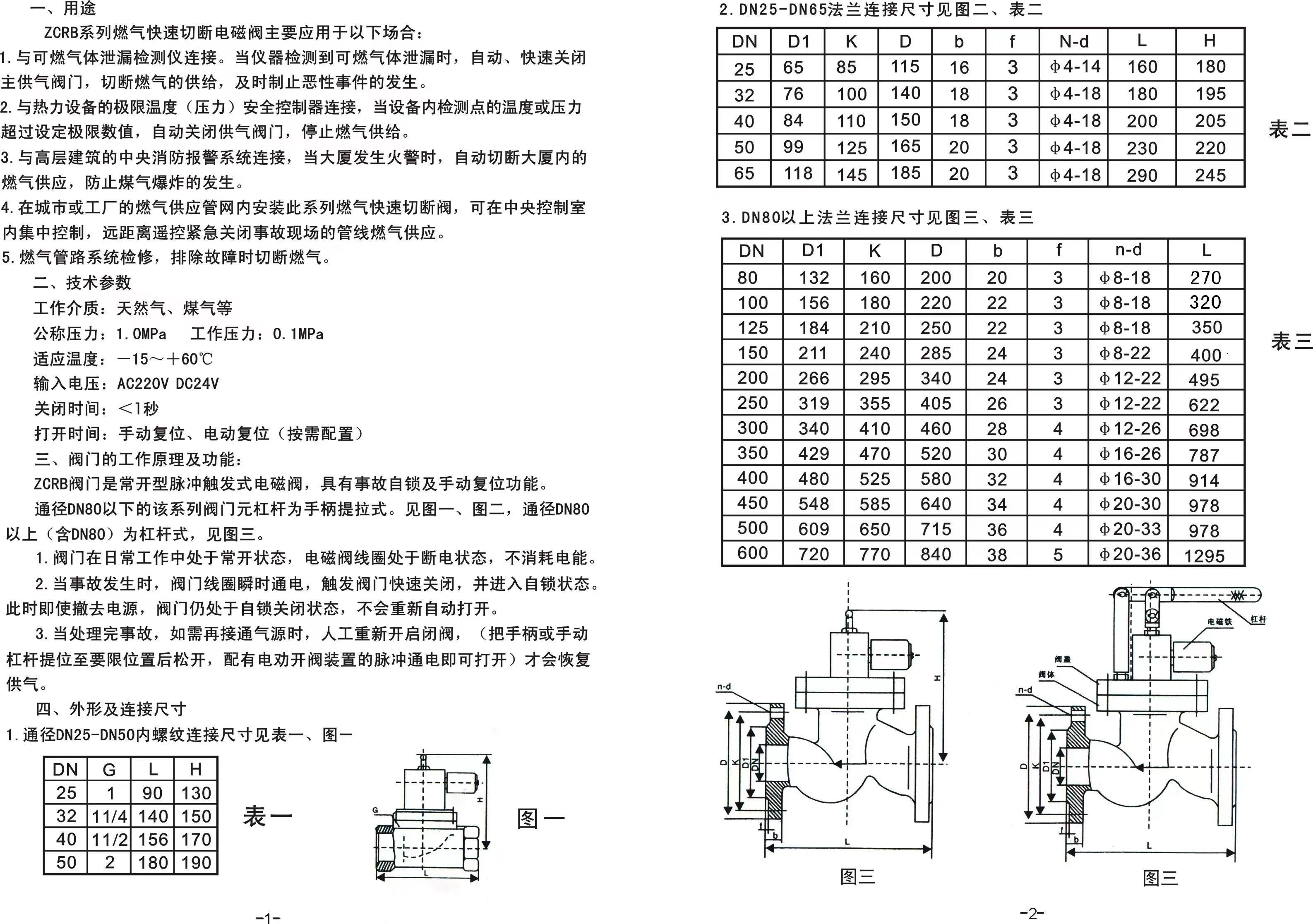 燃?xì)怆姶砰y,燃?xì)饩o急切斷電磁閥工作原理及特點(diǎn)使用說明書(圖)